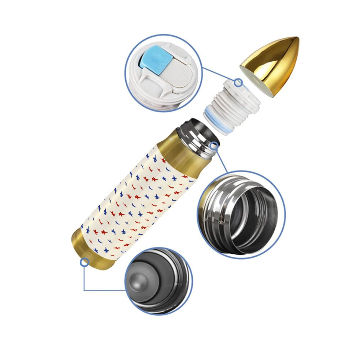 - Visual: Realistic gold metallic bullet silhouette.