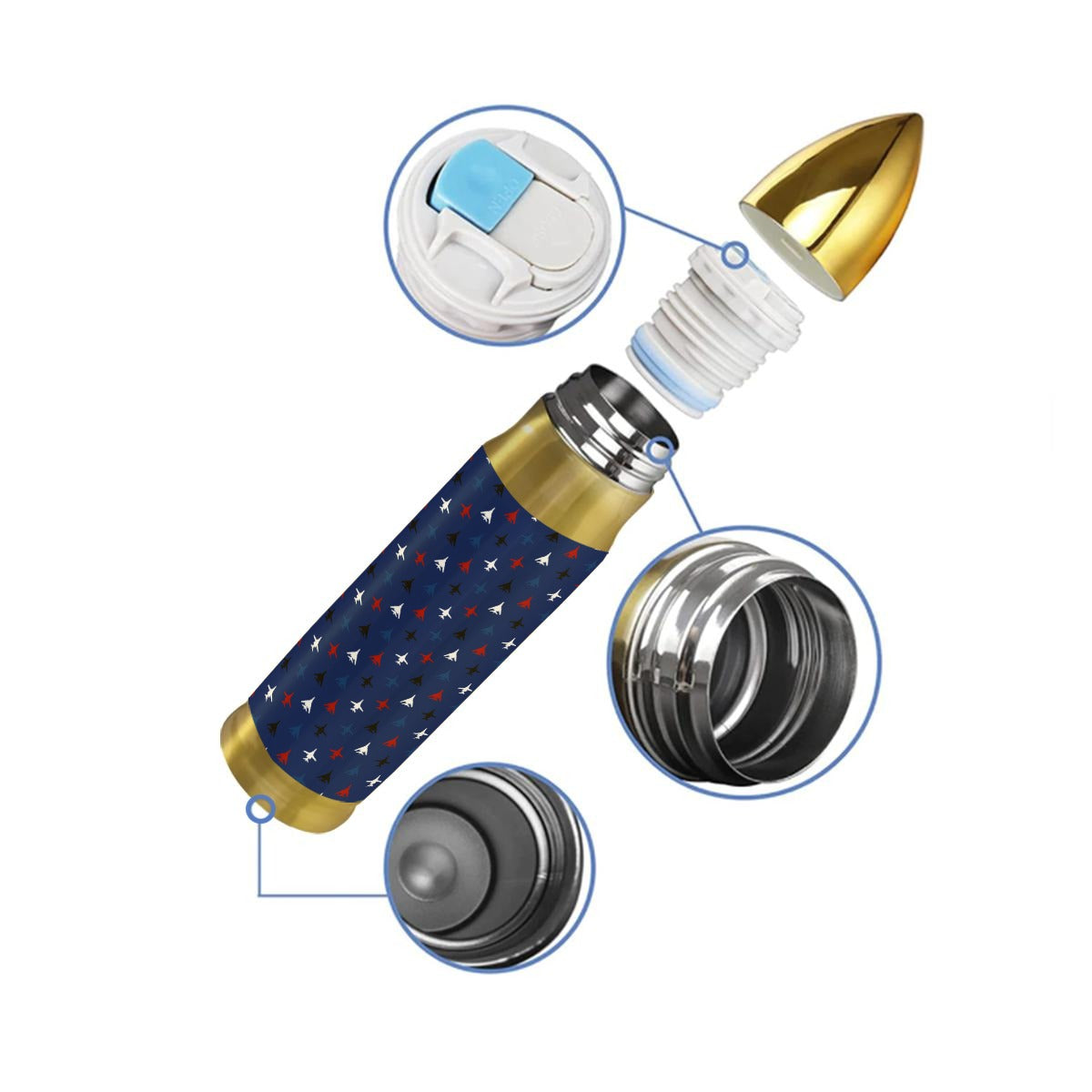 - Visual: Realistic gold metallic bullet silhouette.